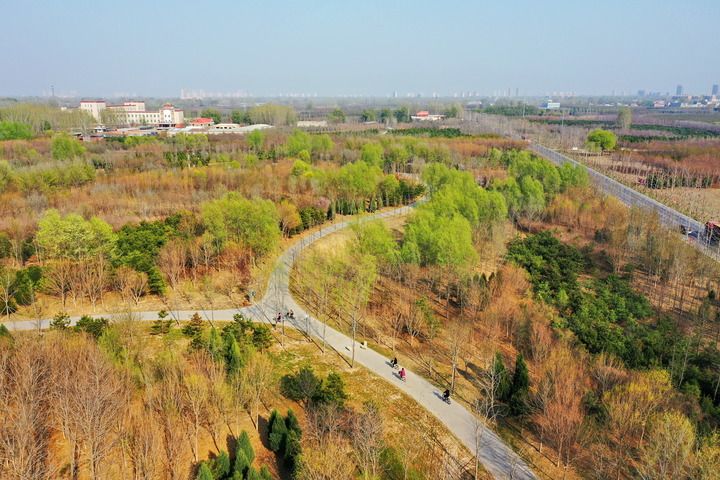 這是雄安新區(qū)千年秀林(2023年3月30日攝,無人機(jī)照片)。新華社記者 牟宇 攝