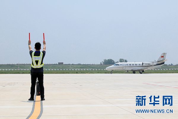 新華網(wǎng)鄭州5月17日電 5月17日上午,一架從中國民用航空飛行校驗(yàn)中心起飛的校驗(yàn)飛機(jī)“獎(jiǎng)狀C560”平穩(wěn)降落在安陽紅旗渠機(jī)場,這也標(biāo)志著為期6天的安陽紅旗渠機(jī)場校驗(yàn)飛行工作正式啟動(dòng)。