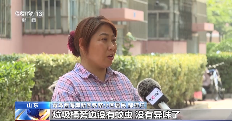 青島西海岸新區(qū)鐵路小區(qū)居民 鄒桂紅:垃圾桶旁邊沒有蚊蟲、沒有異味了,很整潔、很干凈,小區(qū)的整體環(huán)境也提升上去了,所以說我們特別想把垃圾分類分好,感覺居住在這個環(huán)境很舒服。