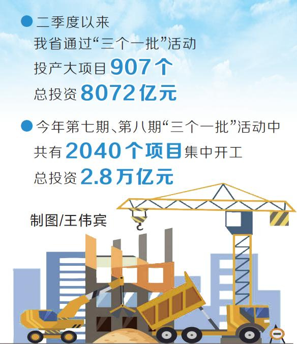 省發(fā)展改革委相關(guān)負(fù)責(zé)人介紹,二季度以來(lái),我省通過(guò)“三個(gè)一批”活動(dòng)投產(chǎn)大項(xiàng)目907個(gè),總投資8072億元,為經(jīng)濟(jì)高質(zhì)量發(fā)展提供強(qiáng)力支撐。