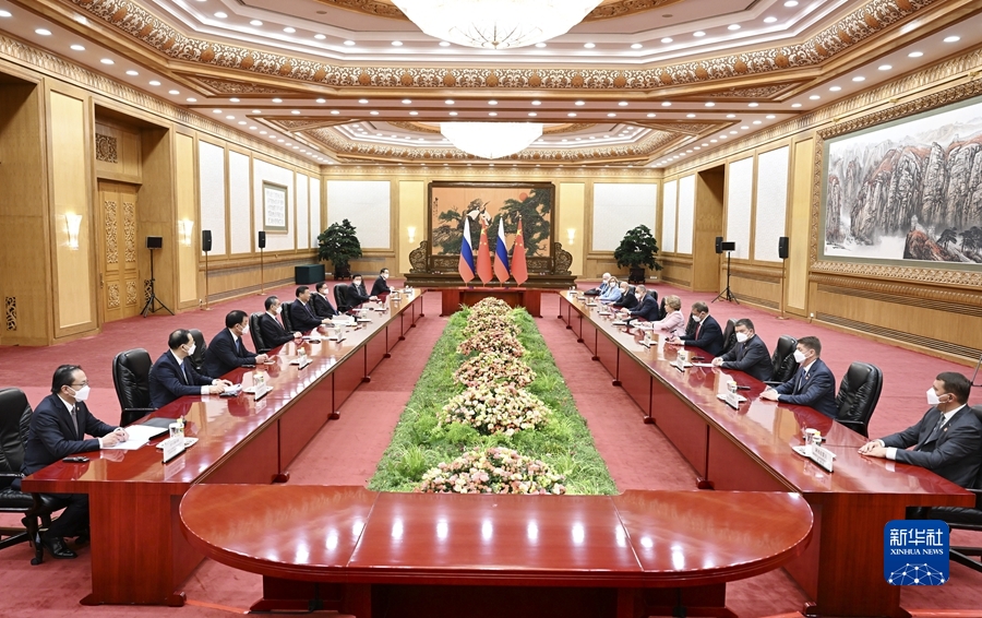 習(xí)近平指出,在雙方共同努力下,中俄關(guān)系始終保持健康穩(wěn)定發(fā)展勢(shì)頭,各領(lǐng)域合作穩(wěn)步推進(jìn),兩國(guó)世代友好的社會(huì)基礎(chǔ)和民意基礎(chǔ)更加牢固。今年3月,我對(duì)俄羅斯進(jìn)行國(guó)事訪問(wèn),同普京總統(tǒng)就深化兩國(guó)全面戰(zhàn)略協(xié)作和各領(lǐng)域務(wù)實(shí)合作達(dá)成新的重要共識(shí)。發(fā)展中俄關(guān)系是兩國(guó)基于各自國(guó)家和人民根本利益作出的戰(zhàn)略選擇。中方愿繼續(xù)同俄方一道,發(fā)展守望相助、深度融通、開拓創(chuàng)新、普惠共贏的新時(shí)代全面戰(zhàn)略協(xié)作伙伴關(guān)系,助力兩國(guó)發(fā)展振興,推動(dòng)建設(shè)繁榮穩(wěn)定、公平公正的世界。