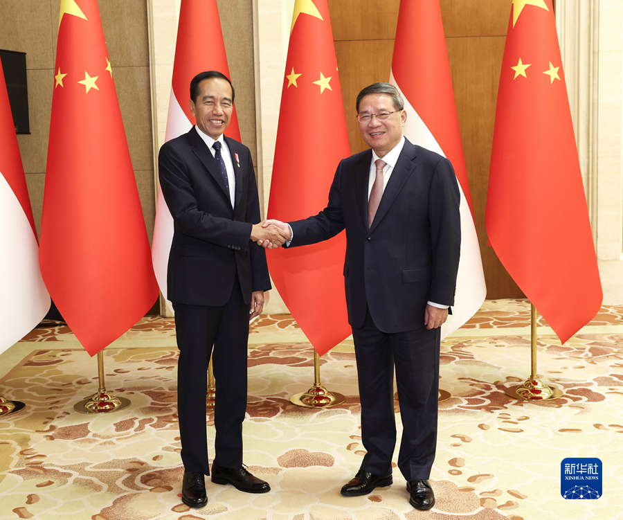 10月17日上午,國務院總理李強在北京會見來華出席第三屆“一帶一路”國際合作高峰論壇并進行國事訪問的印度尼西亞總統(tǒng)佐科。新華社記者 龐興雷 攝