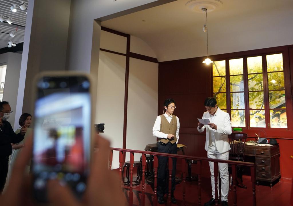 ??2023年5月18日晚,中共一大紀(jì)念館原創(chuàng)的情景黨課《又見新青年》在展廳內(nèi)實景演出。自2021年中國共產(chǎn)黨成立100周年之際全新開放以來,中共一大紀(jì)念館對紅色文化的創(chuàng)新傳播正不斷“圈粉”年輕人。新華社記者 劉穎 攝