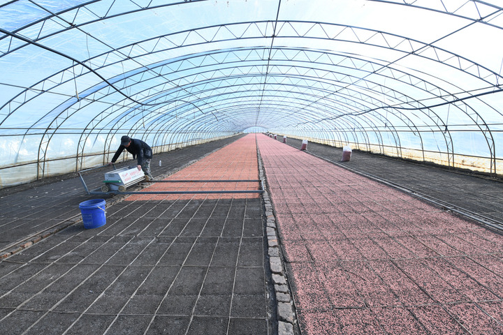 ??4月4日,在黑龍江北大荒農(nóng)業(yè)股份有限公司友誼分公司一水稻育秧大棚里,農(nóng)業(yè)職工在進行播種作業(yè)。 新華社記者 王松 攝