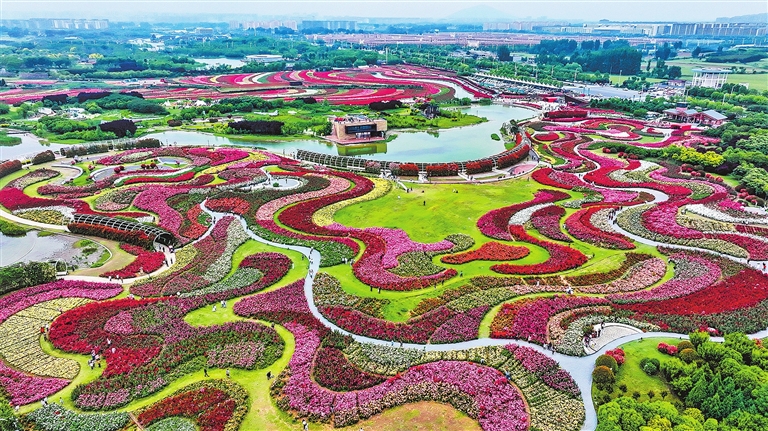 ??“五一”期間,南陽世界月季大觀園成為花海,6000多個(gè)品種的月季爭(zhēng)相怒放,吸引全國(guó)各地的游客前來觀賞(5月4日攝)。 崔培林 攝