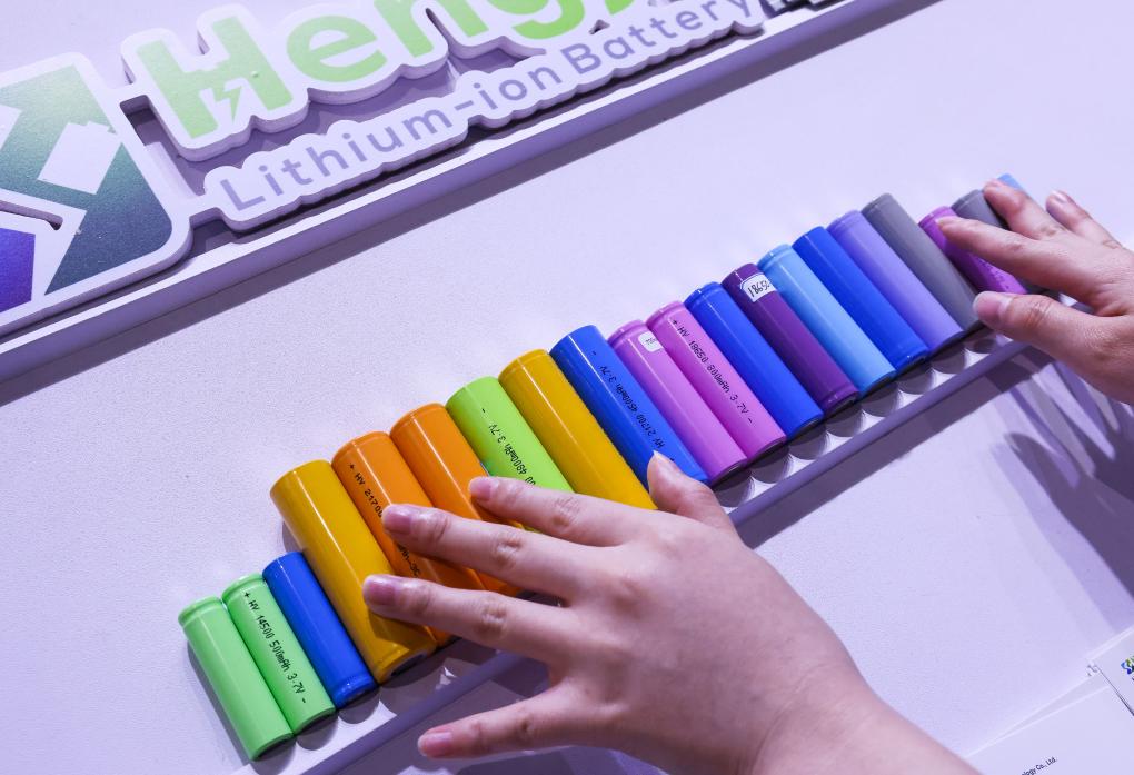??參展商在第135屆廣交會(huì)新能源展區(qū)布置鋰電池展品(2024年4月15日攝)。新華社記者 劉大偉 攝