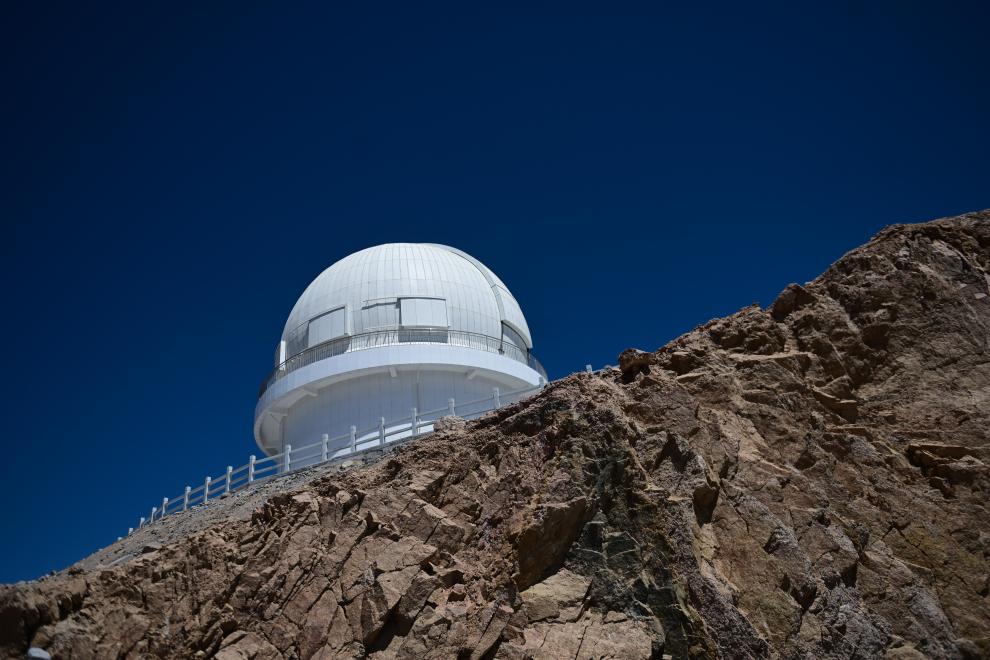 ??這是在青海省海西蒙古族藏族自治州茫崖市冷湖鎮(zhèn)賽什騰山拍攝的中國(guó)科學(xué)技術(shù)大學(xué)和中國(guó)科學(xué)院紫金山天文臺(tái)聯(lián)合研制的大視場(chǎng)光學(xué)成像望遠(yuǎn)鏡——墨子巡天望遠(yuǎn)鏡(2024年4月20日攝)。新華社記者 張龍 攝