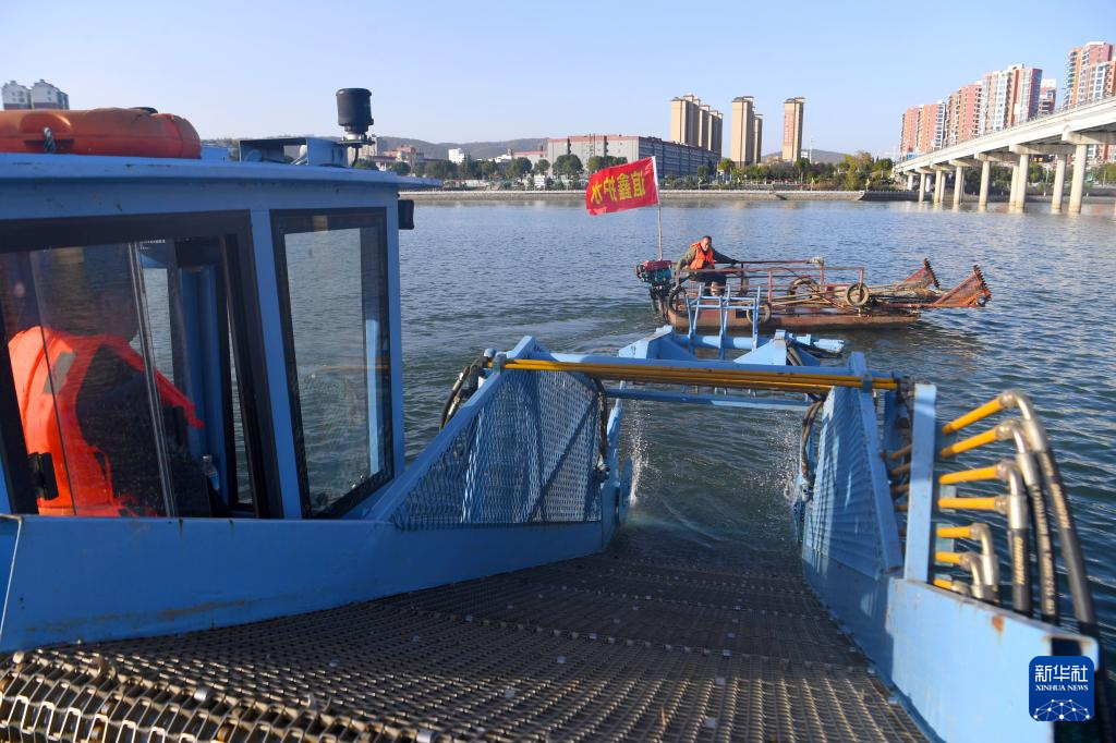 ??11月27日,淅川縣清漂隊工作人員在丹江口水庫宋崗碼頭附近進行清漂作業(yè)。
