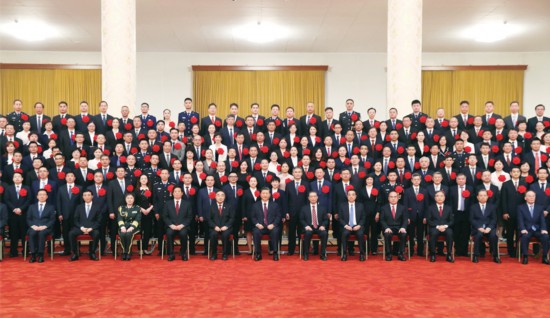 今天,我們隆重召開全國抗擊新冠肺炎疫情表彰大會,向作出杰出貢獻的功勛模范人物頒授共和國勛章和國家榮譽稱號獎?wù)拢碚每挂呦冗M個人和先進集體,弘揚偉大抗疫精神,為決勝全面建成小康社會、奪取新時代中國特色社會主義偉大勝利而不懈奮斗!